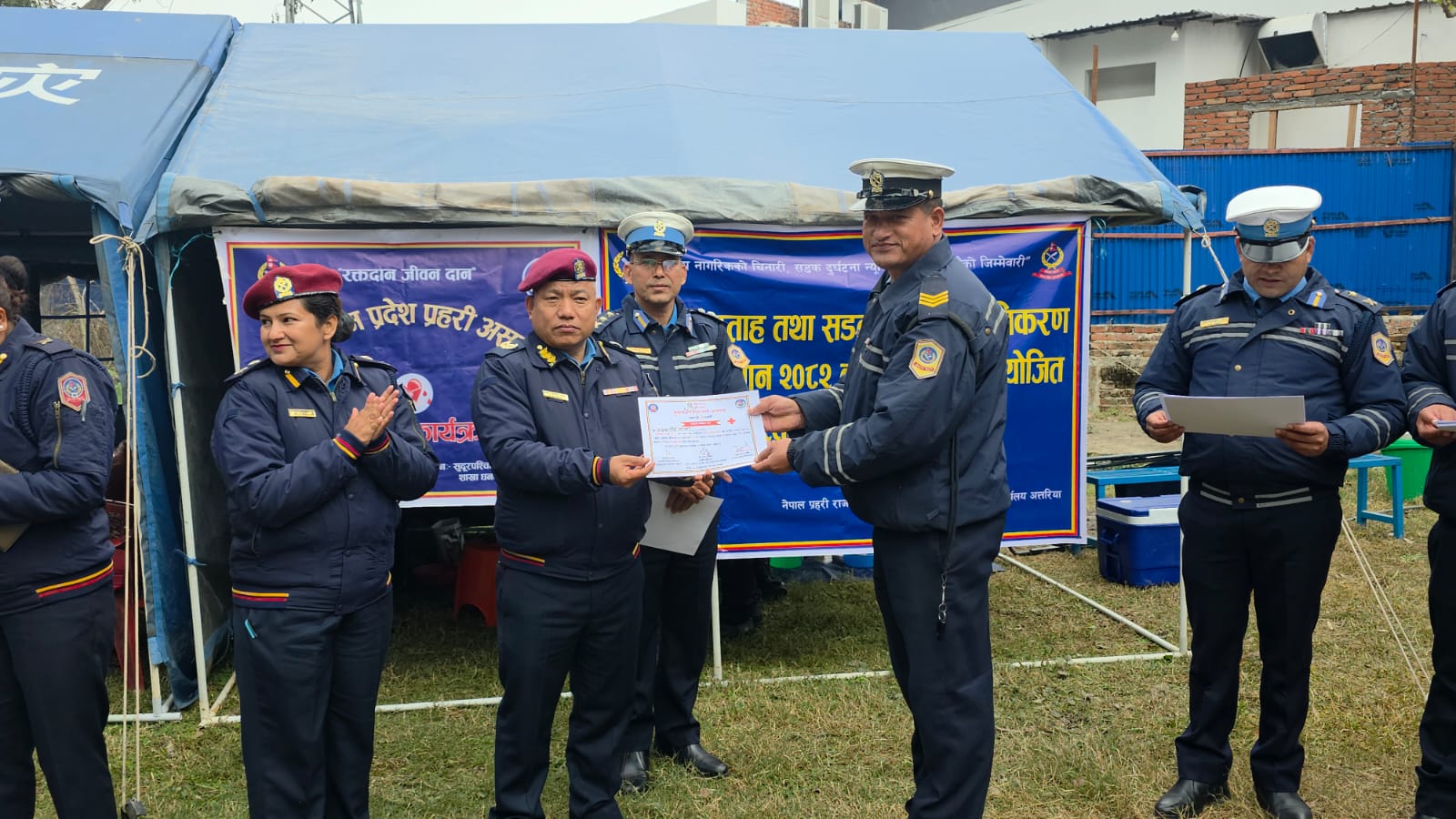 “सभ्य नागरिकको चिनारी, सडक दुर्घटना न्यूनीकरण हामी सबैको जिम्मेवारी” भन्ने मूल नाराका साथ सञ्चालन भइरहेको ट्राफिक सप्ताह तथा सडक दुर्घटना न्यूनीकरण विशेष अभियान २०८२ अन्तर्गत नेपाल प्रहरी राजमार्ग सुरक्षा तथा ट्राफिक व्यवस्थापन कार्यालय अत्तरियाको आयोजनामा रक्तदान, स्वास्थ्य परीक्षण तथा आँखा जाँच कार्यक्रम सम्पन्न भएका छन्।