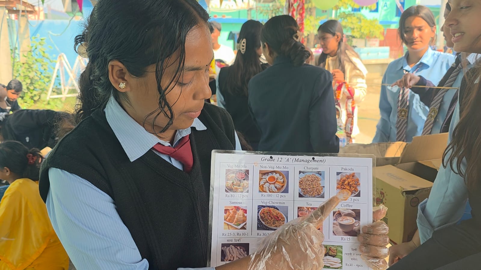 विद्यालय परिसर बुधबार बिहानैदेखि नै उत्साह, रौनक र उद्यमशीलताको अभ्यासले भरिएको थियो । विद्यार्थीहरूले १६ वटा स्टल स्थापना गरी आफैं नेपाली परिकार पकाउँदै र विक्री गर्दै वास्तविक व्यवसाय सञ्चालनको अनुभव लिइरहेका छन् । पकौडा, मःम, सेलरोटी, चटपटे, आलुचप, चाउमिन, पानीपुरी, जुसदेखि लिएर विभिन्न घरेलु तथा आधुनिक खानाका परिकारहरू स्टलहरूमा सजिएका थिए । हरेक स्टलमा मूल्यसूची राखिएको थियो, ग्राहकलाई आकर्षित गर्न पोस्टर टाँसिएका थिए, र विद्यार्थीहरू मुस्कानसहित सेवा दिन व्यस्त थिए ।